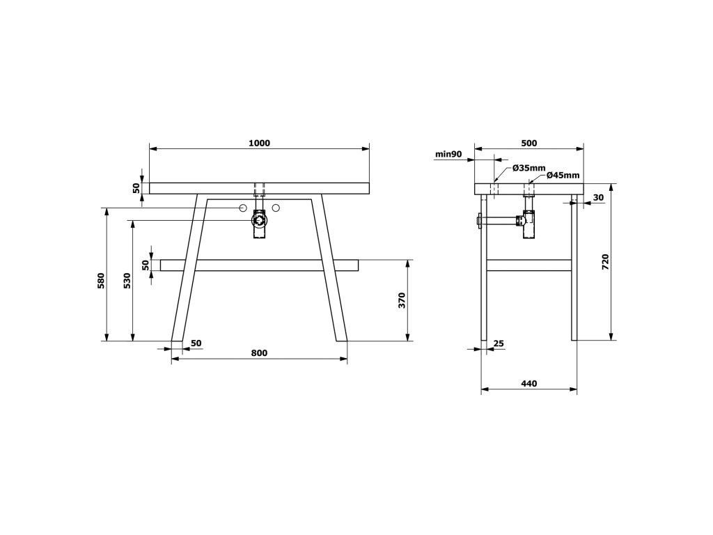 TWIGA umývadlový stolík 100x72x50 cm, čierna matná/štiepaný kameň