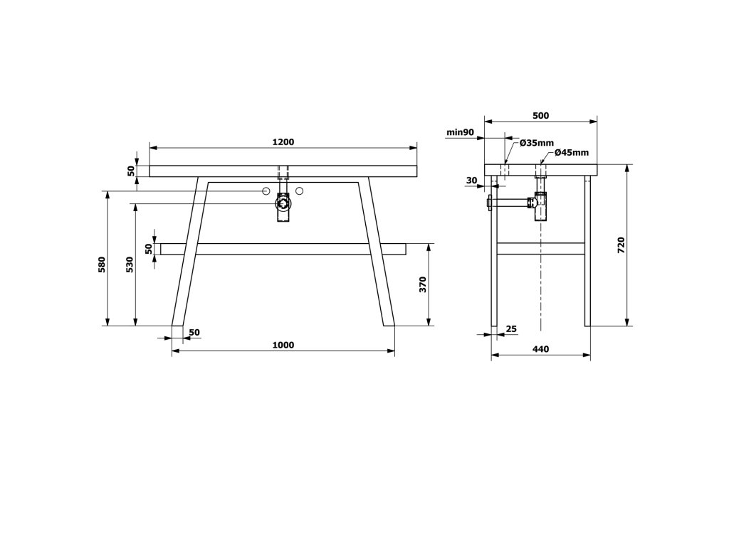TWIGA umývadlový stolík 120x72x50 cm, čierna matná/Aquamarine