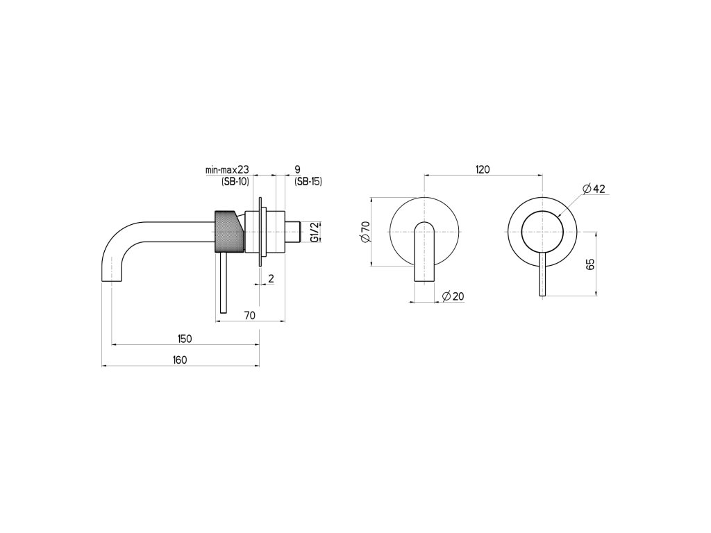 ULTRASAN 2-prvková podomietková umývadlová batéria, hubica 15cm, zlato mat