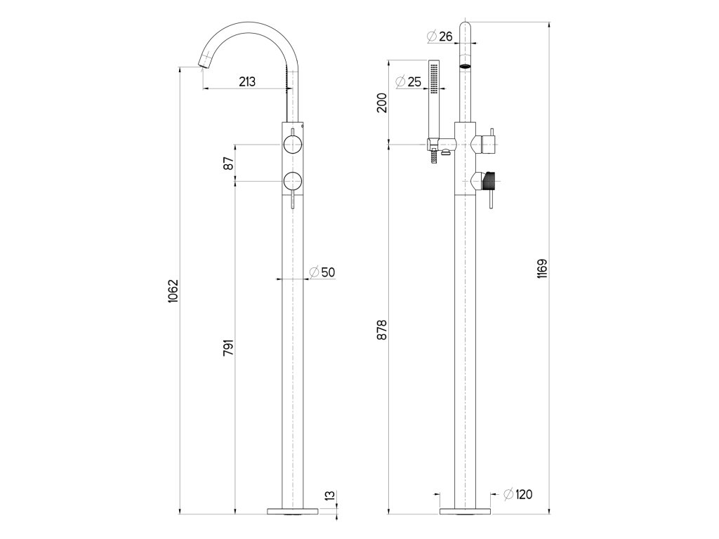 ULTRASAN vaňová batéria s pripojením do podlahy, zlato mat
