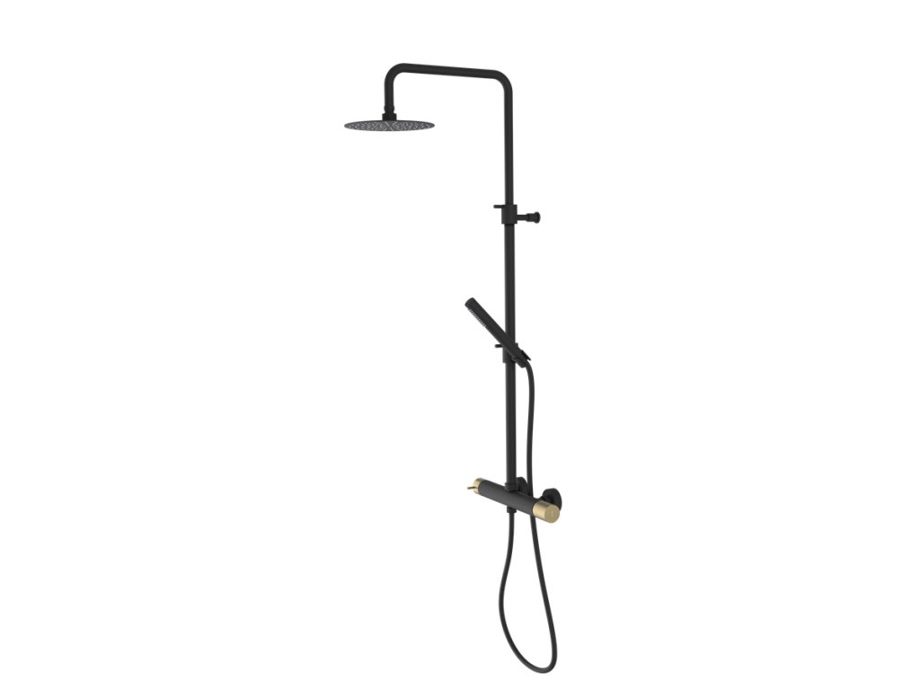 ULTRATAP sprchový stĺp s pákovou s batériou, guľatý, čierná mat/zlato mat