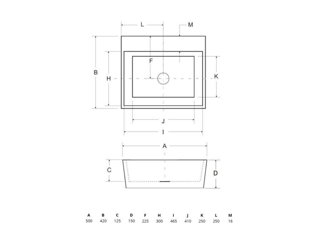 Rozmer voľne stojaceho umývadla: