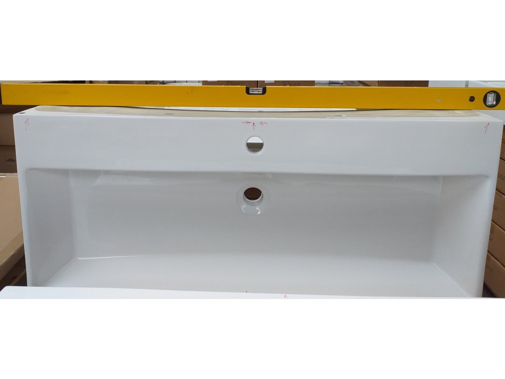 Zadná pohľadová hrana nie je rovná, táto vzhľadová chyba nemá vplyv na funkčnosť umývadla.