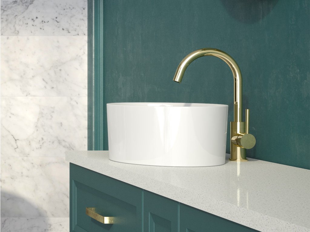 Umývadlo UNIQA na dosku nemá otvor pre stojančekovú batériu, pre elegantné riešenie môžete použiť umývadlové podomietkové batérie, alebo umývadlové vysoké stojančekové batérie.