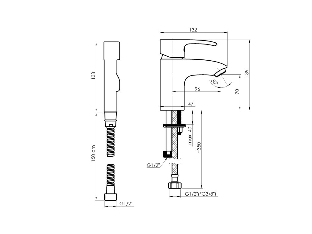 - Vrátane hadice (150 cm), bidetovej spŕška a jej držiaka na stenu