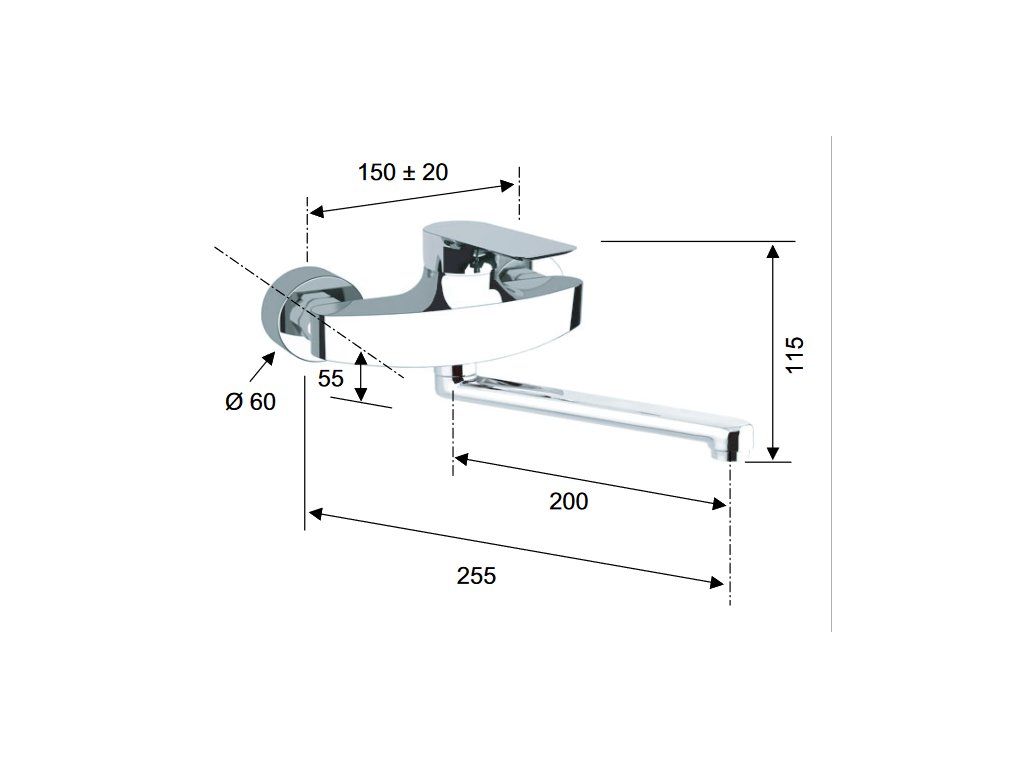 Nástenná batéria je dodávaná s výtokovým ramienkom.
