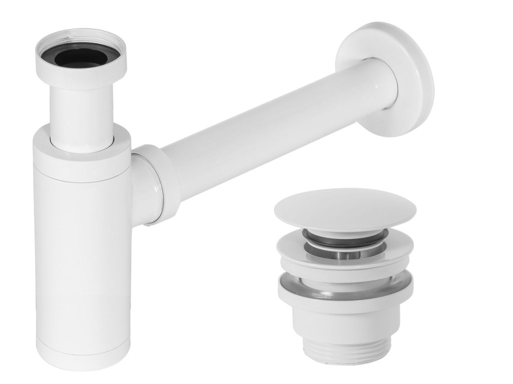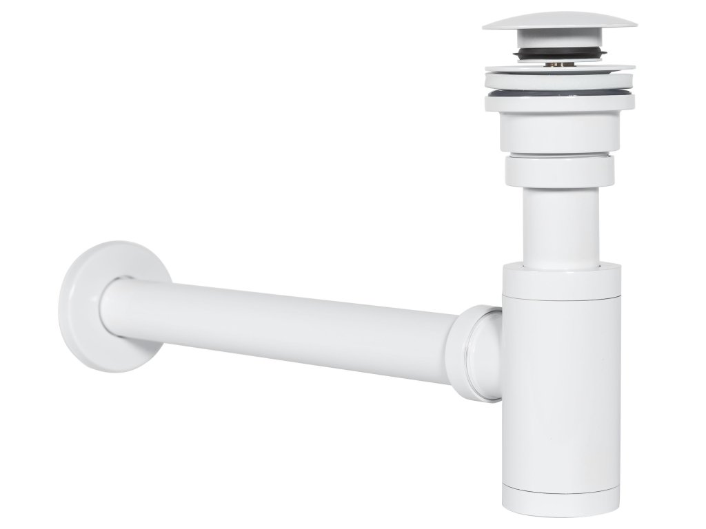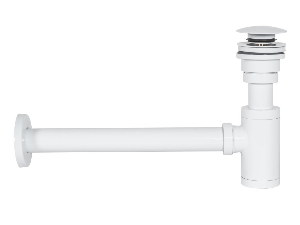 Umývadlový kovový sifón s click/clack zátkou, univerzálny, biela