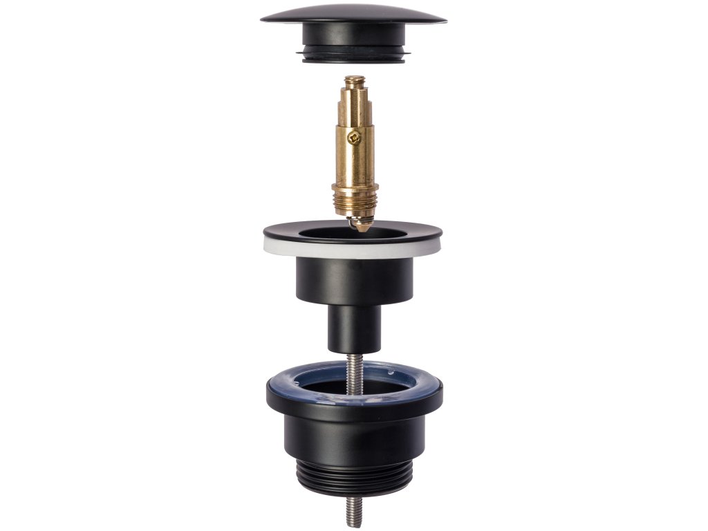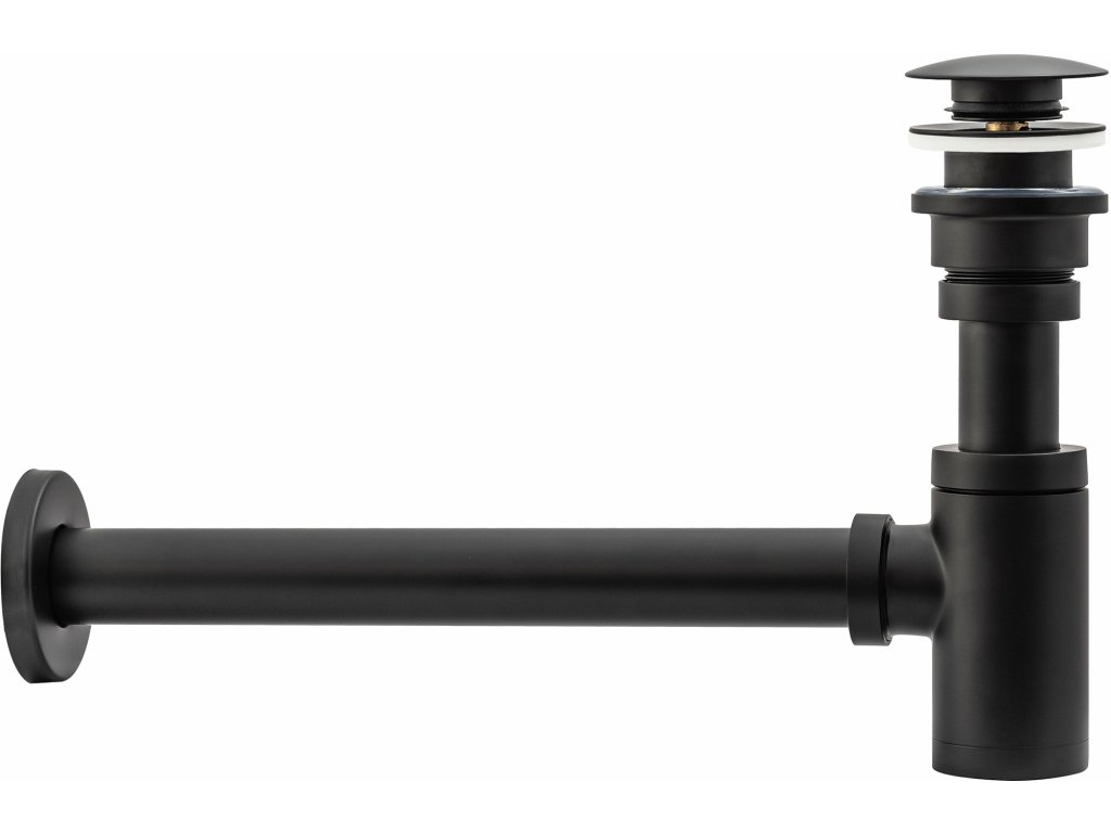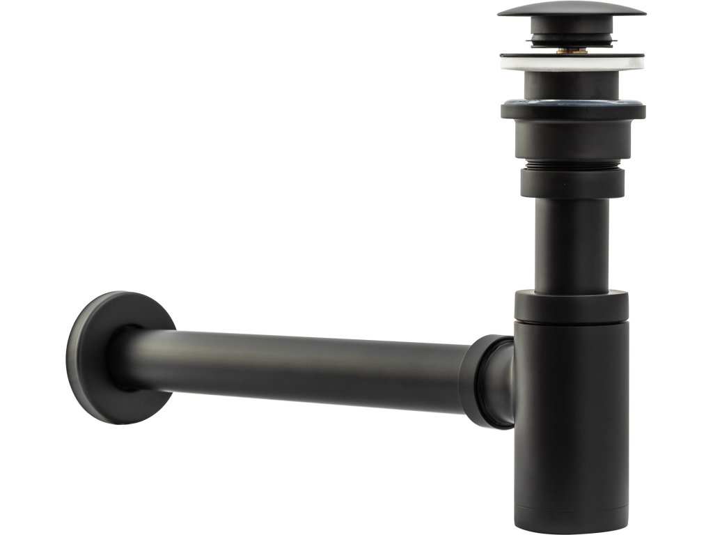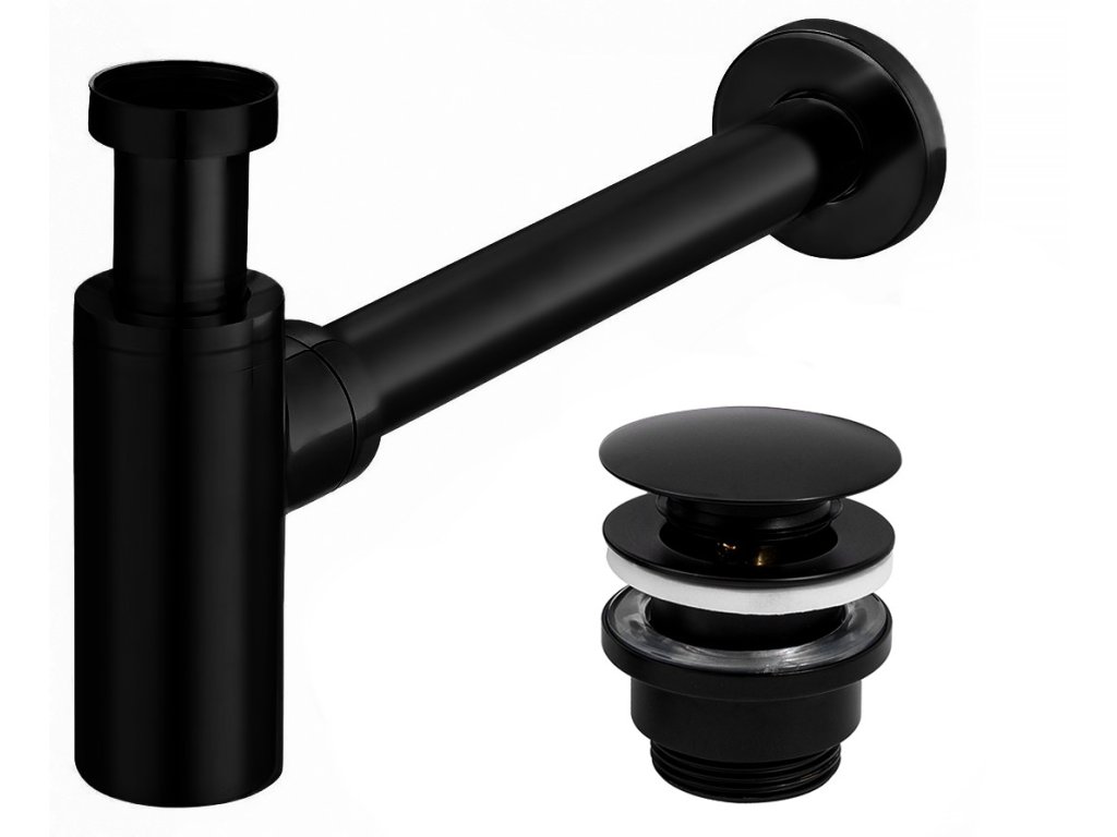 Umývadlový kovový sifón s click/clack zátkou, univerzálny, čierna
