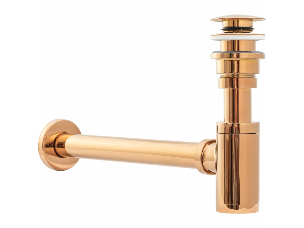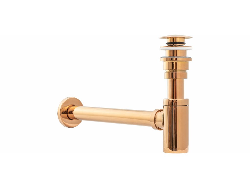 Umývadlový kovový sifón s click/clack zátkou, univerzálny, zlatá ružová