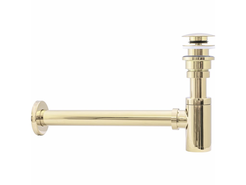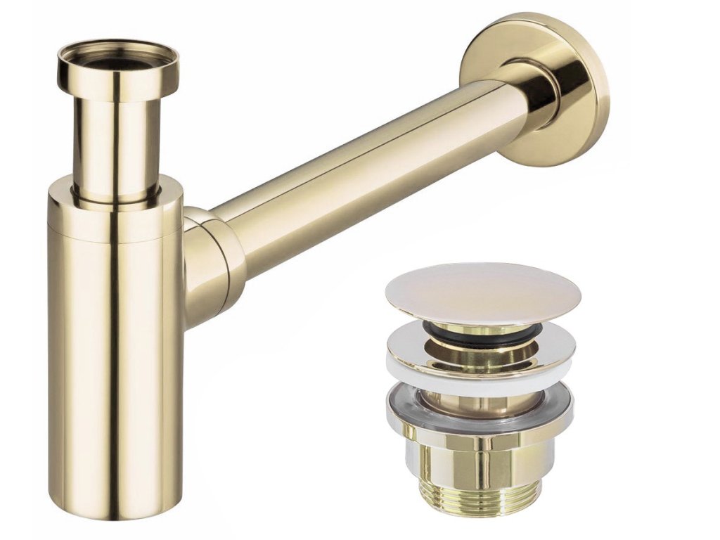 Umývadlový kovový sifón s click/clack zátkou, univerzálny, zlatá svetlá