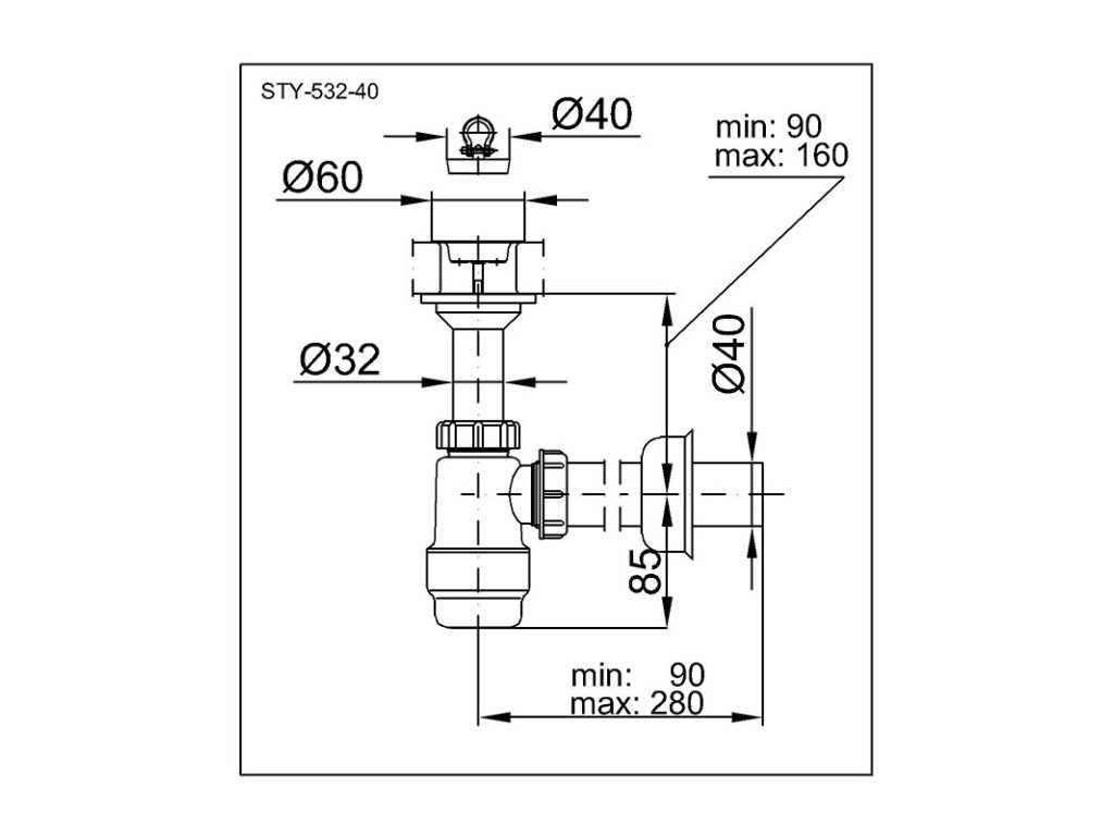 - Sifón umývadlový s nerezovou mriežkou 60 mm