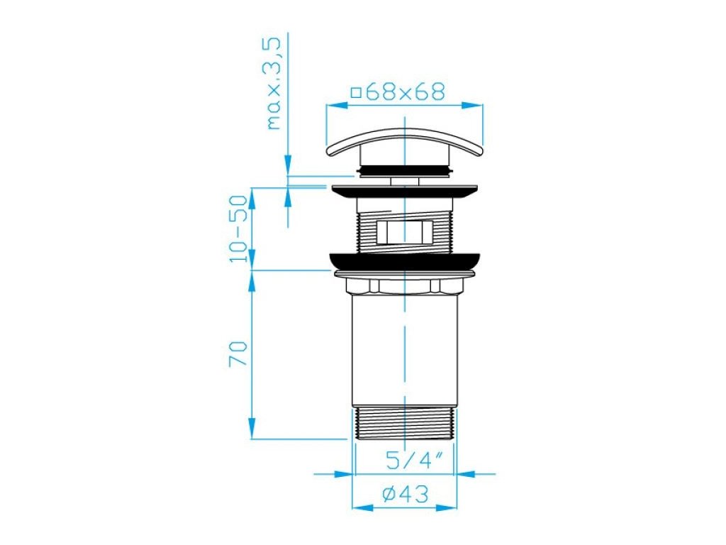 Umývadlový výpust click-clack s prepadom HRANATÁ