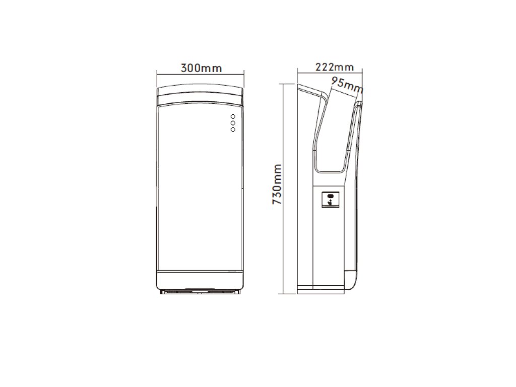 V-JET INOX bezdotykový tryskový sušič rúk 220-240V, 1650W, 300x730x222mm, nerez mat