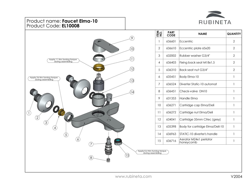 Vaňová nástenná batéria ELMA-10 vyniká vysoko kvalitným spracovaním a spoľahlivou funkčnosťou všetkých súčastí a materiálov.