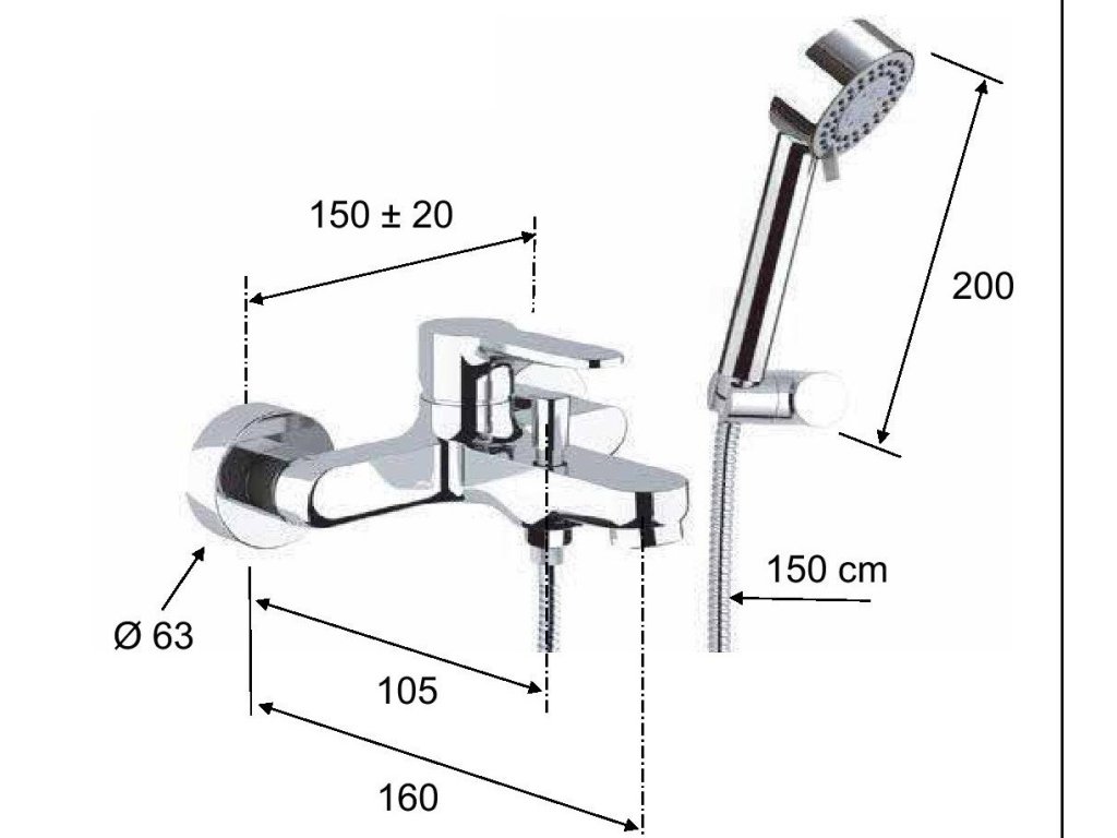 - Nástenná páková batéria s príslušenstvom