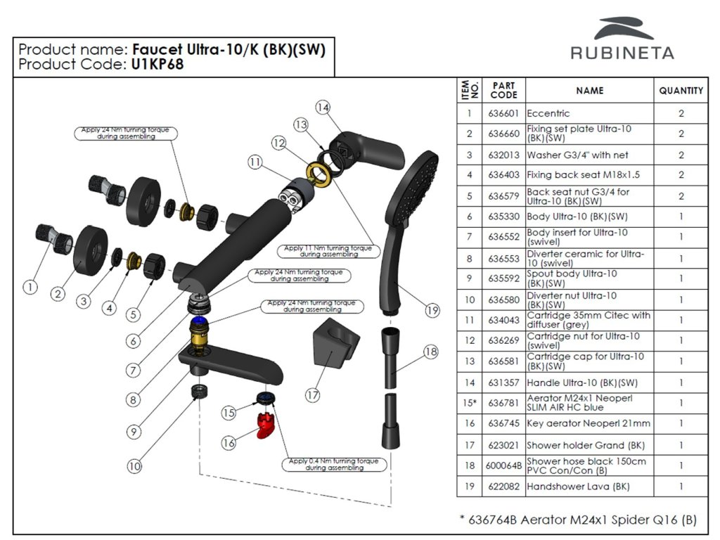- Odlievané telo týchto vodovodných batérií je vyrobené zo špeciálne upravenej nehrdzavejúcej mosadznej zliatiny RubiBrass. Je odolná a bezpečná pre ľudské zdravie a životné prostredie. RubiBrass má menej olova a ďalších nepotrebných zlúčenín, ktoré môžu reagovať s pitnou vodou.