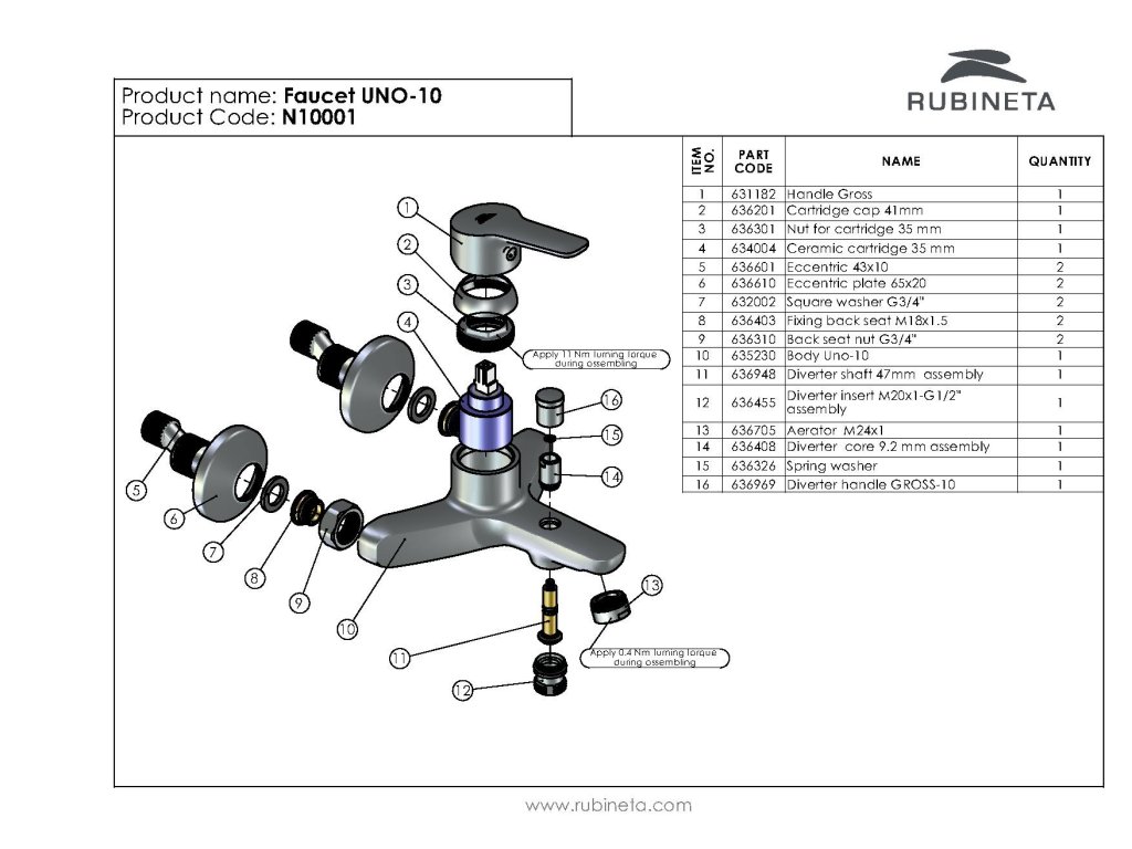 Vaňová nástenná batéria UNO-10 vyniká vysoko kvalitným spracovaním a spoľahlivou funkčnosťou všetkých súčastí a materiálov.