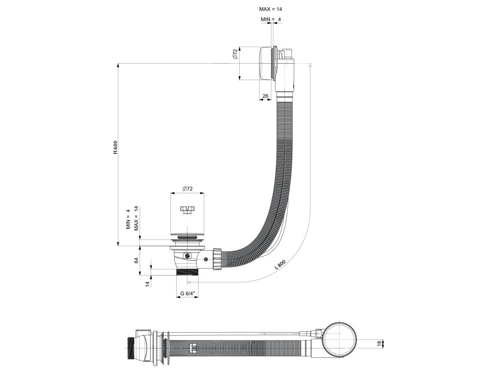 Vaňová súprava s bovdenom, dĺžka 800mm, zátka 72mm, biela