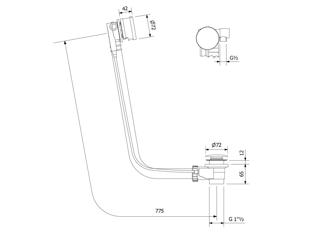 Vaňová súprava s napúšťaním, bovden, dĺžka 775mm, zátka 72mm, zlato matná