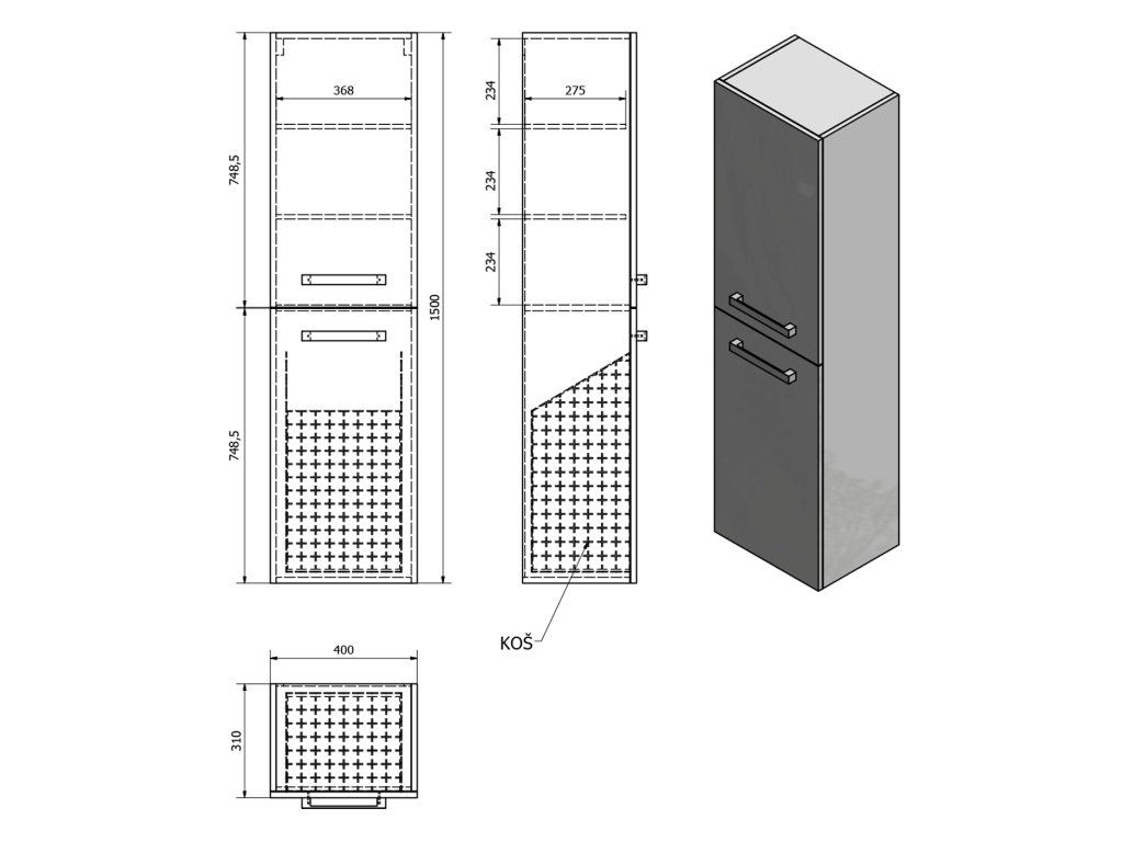 VEGA Skrinka vysoká s košom 40x150x31cm, dub platin
