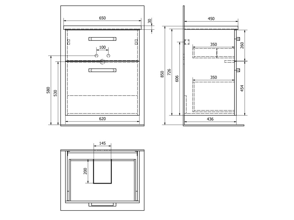 VEGA umývadlová skrinka 62x72,6x43,8cm, 2x zásuvka, dub platin