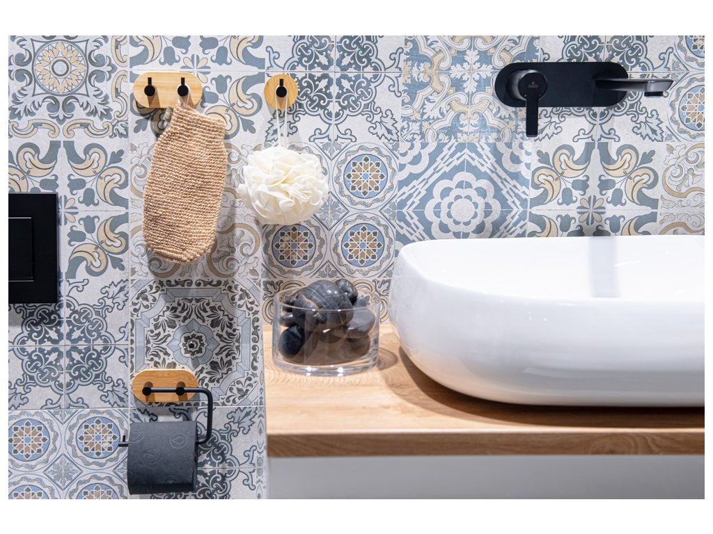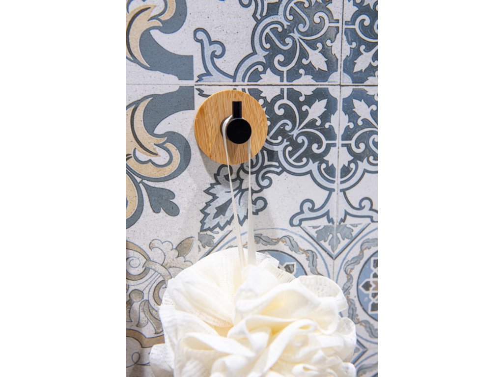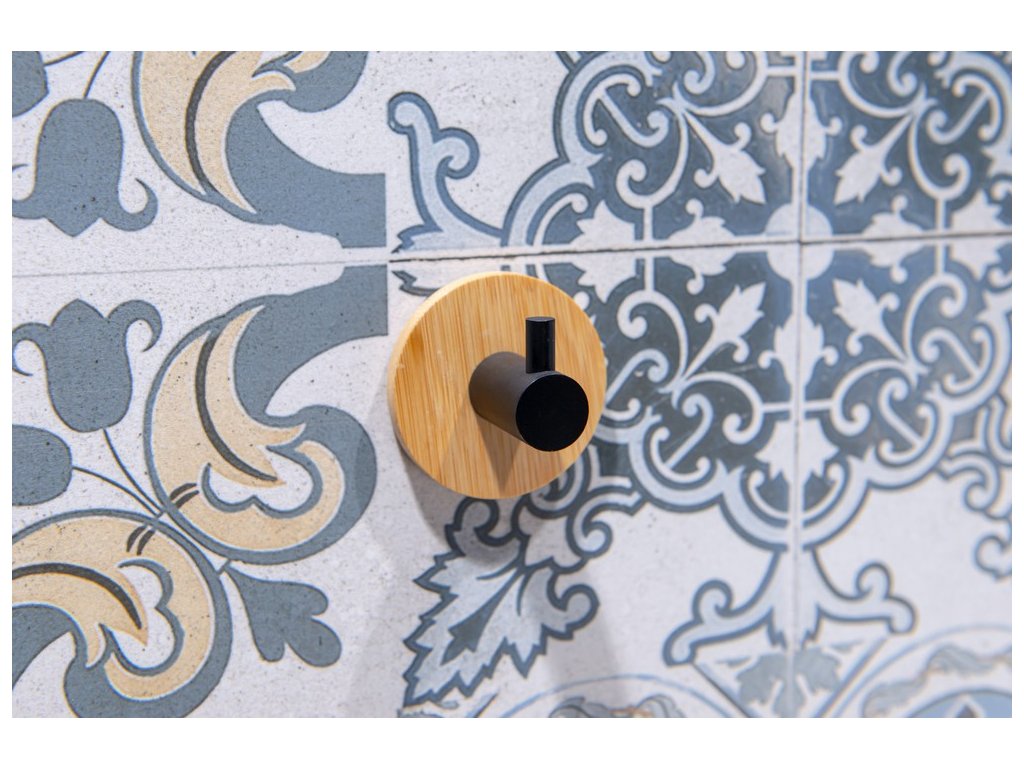 Okrúhly vešiak - háčik z kvalitnej, čierno lakovanej, ocele v kombinácii s populárnym bambusom . Najväčšou výhodou tohto vešiaka je jednoduché lepenie na obklady pomocou veľmi silnej 3M pásky. Samolepiace kúpeľňové doplnky sú ideálnym riešením, pokiaľ nechcete vŕtať do obkladov. Veľmi kvalitná lepiaca páska 3M priľne k rôznym povrchom a umožňuje ľahké odstránenie doplnkov bez zanechania stôp či poškodenia. Jeho maximálna nosnosť je 1 kg.