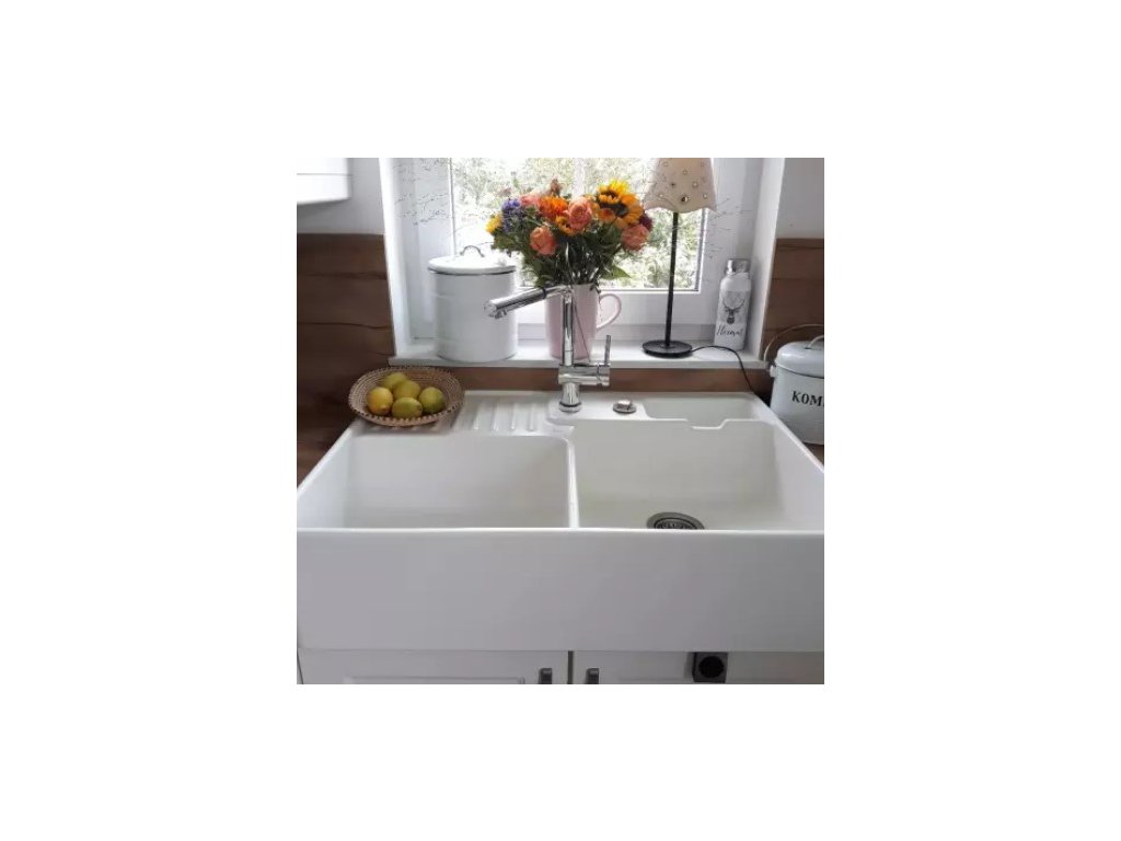 - biely keramický dvoj drez