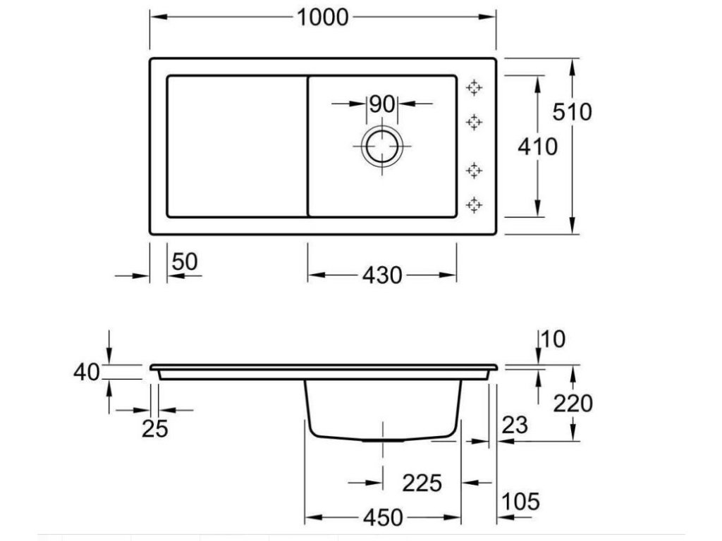 Keramický drez Timeline 1000.0 je ideálnou voľbou pre náročných zákazníkov, ktorí radi varia a ocenia predovšetkým pohodlie v kuchyni. Mimoriadne veľká hlavná komora umožňuje pohodlné umývanie a oplachovanie objemných tanierov a hrncov. Do bočného panelu drezu Timeline 1000.0 je možné vyvŕtať otvor na inštaláciu kuchynskej batérie. Takto umiestnená batéria poskytne komfortnú a optimálnu manipuláciu. Drez taktiež ponúka veľmi priestrannú odvodňovaciu plochu, ktorá je v miernom sklone, takže voda ľahko a rýchlo stečie späť do drezu.