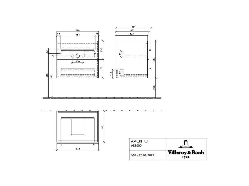 Villeroy & Boch AVENTO : spodná skrinka 580x514x452mm, 2 výsuvné diely, Crystal White, A88900B4