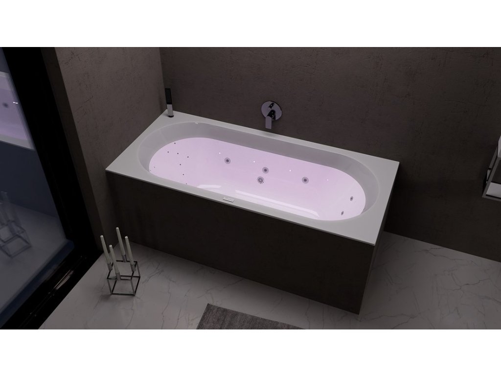 VIVA B hydromasážna vaňa, 185x80x47cm, Highline Hydro-Air, chróm