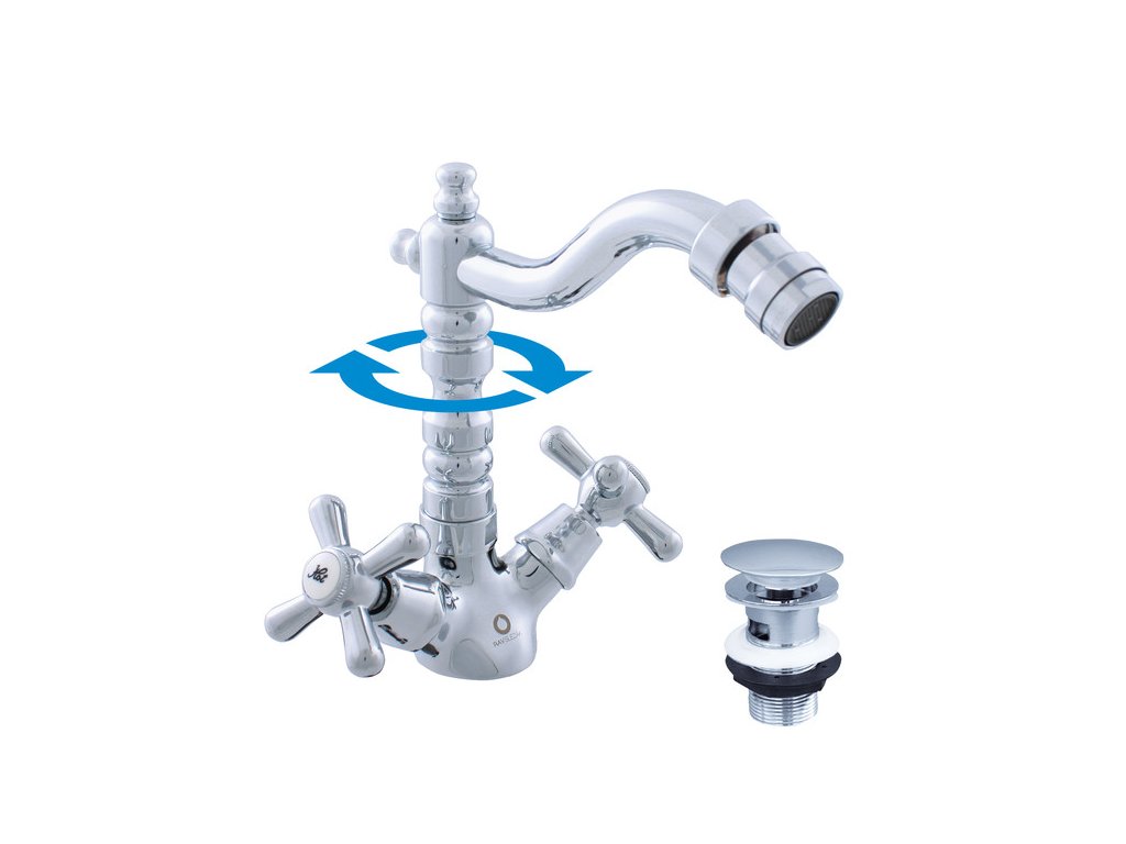 Vodovodní baterie bidetová stojánková s otočným ústím s výpustí CLICK-CLACK.