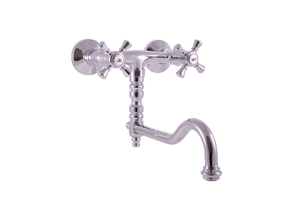 Vodovodní baterie dřezová nástěnná s kulatým otočným ramínkem.