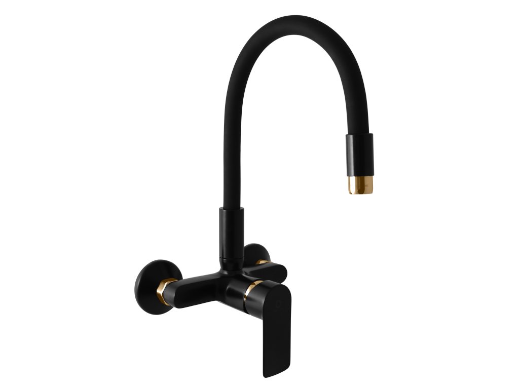Vodovodná batéria drezová s flexibilným ramienkom COLORADO čierna matná/zlato
