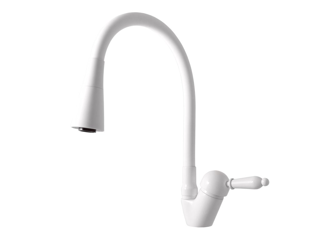 Vodovodná batéria drezová s flexibilným ramienkom so sprchou - biela