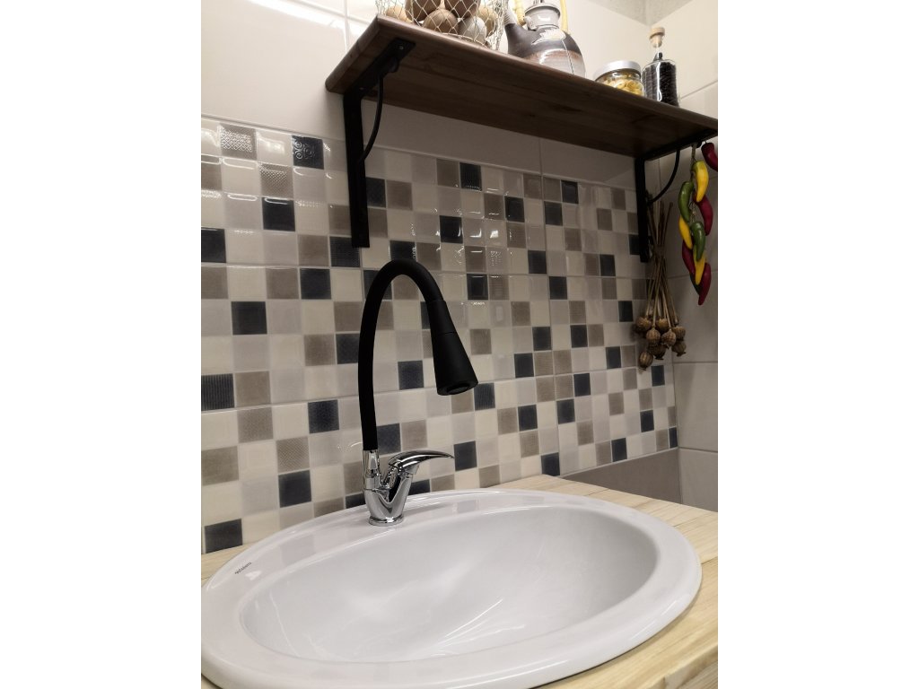 Vodovodní baterie dřezová stojánková s flexibilním otočným ramínkem se sprchou.
