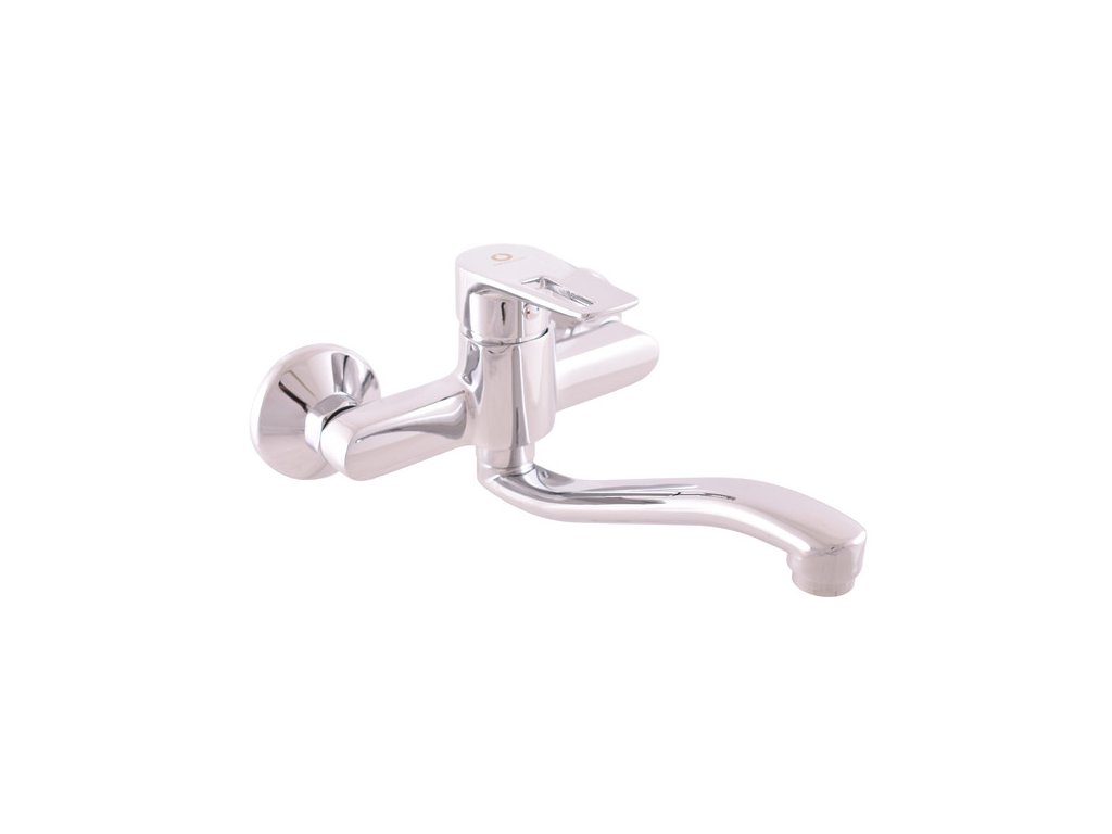 Vodovodná batéria drezová/umývadlová nástenná s plochým „S“ ramienkom 195 mm.