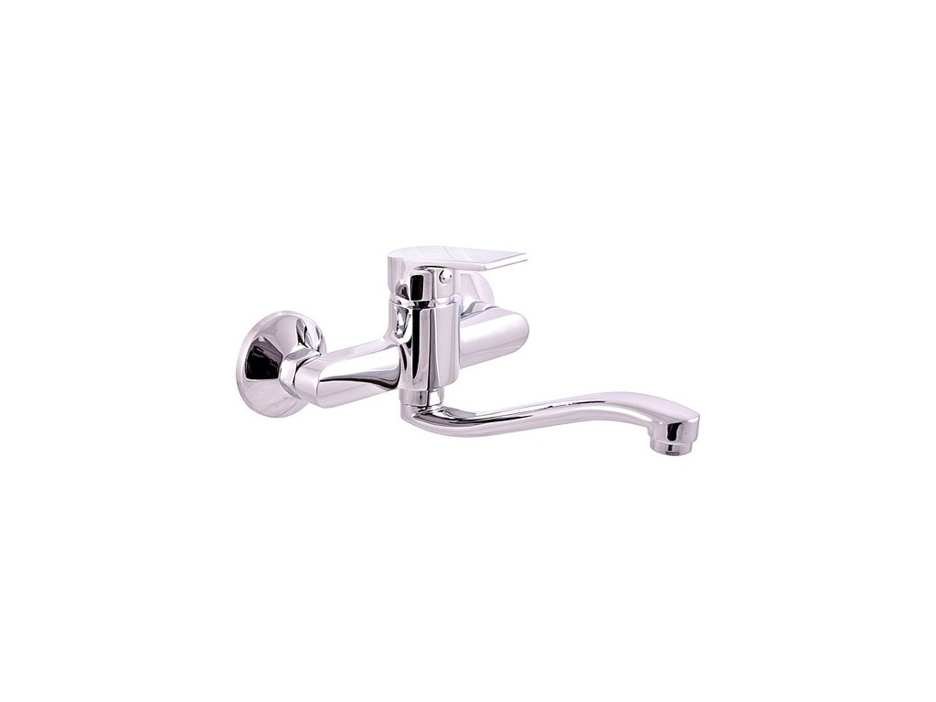 Vodovodná batéria drezová/umývadlová nástenná s plochým „S“ ramienkom 195 mm.
