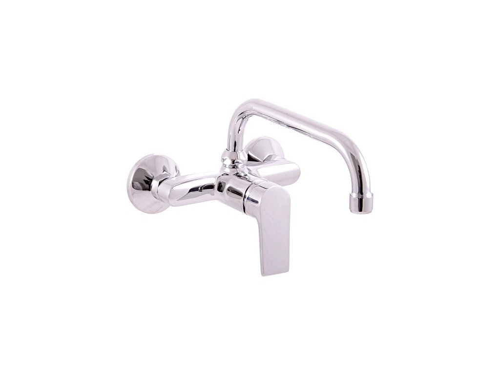 Vodovodná batéria drezová/umývadlová nástenná s guľatým vrchným ramienkom 200 mm.