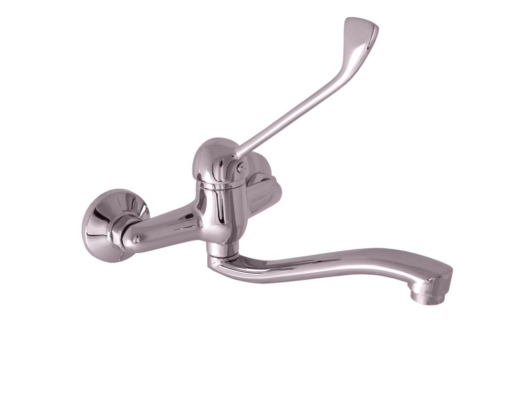 Vodovodná batéria drezová/umývadlová nástenná s plochým "S" ramienkom 195 mm a s lekárskou pákou.