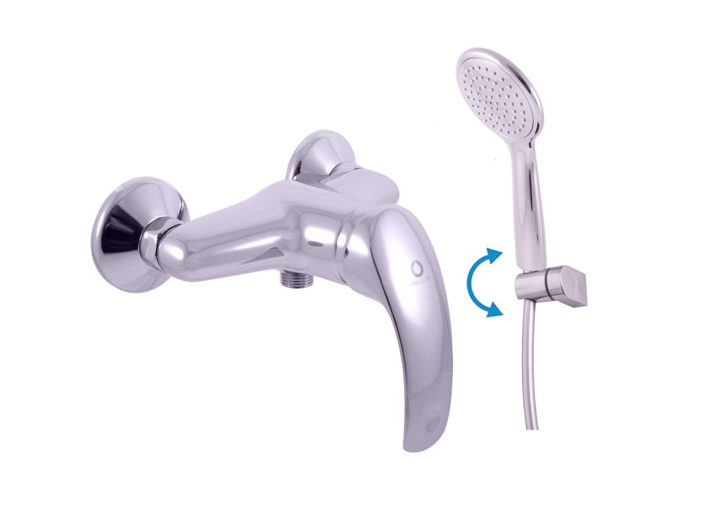 Vodovodní baterie sprchová nástěnná se sprchou a otočným držákem.