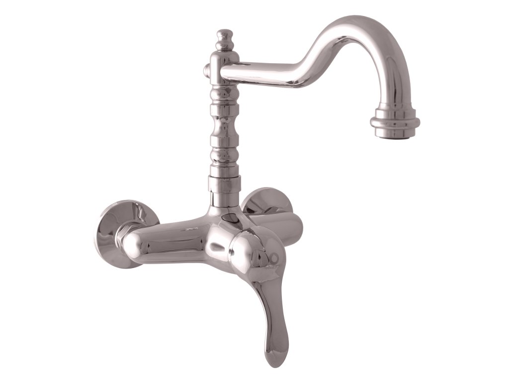 Vodovodná batéria umývadlová/drezová nástenná s okrúhlym otočným ramienkom.