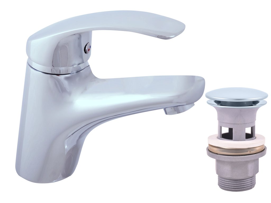 Vodovodní baterie umyvadlová stojánková s výpustí click-clack.