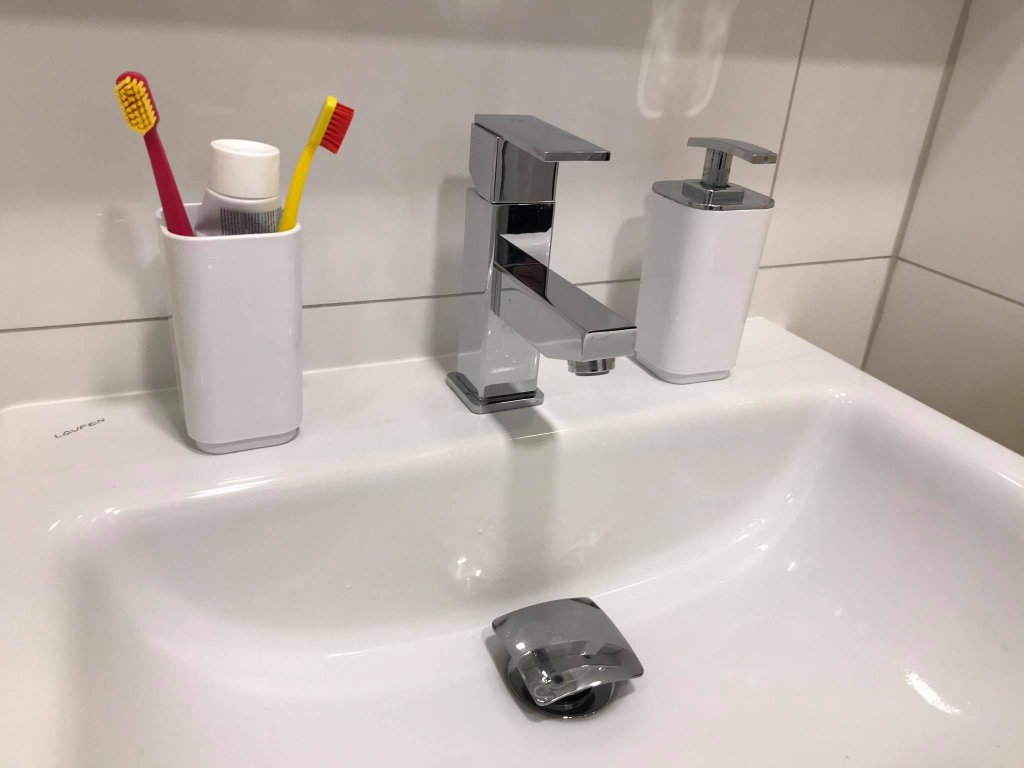 Vodovodná batéria umývadlová stojanková s výpusťou click-clack.