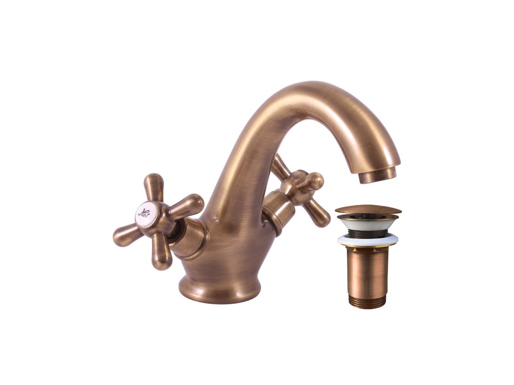 Vodovodná batéria umývadlová s výpusťou click-clack MORAVA STARÁ MOSADZ