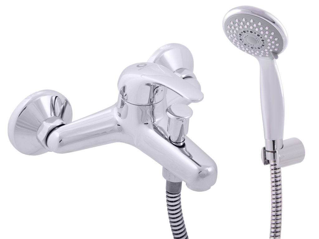 Vodovodná batéria vaňová nástenná so sprchou a pevným držiakom.