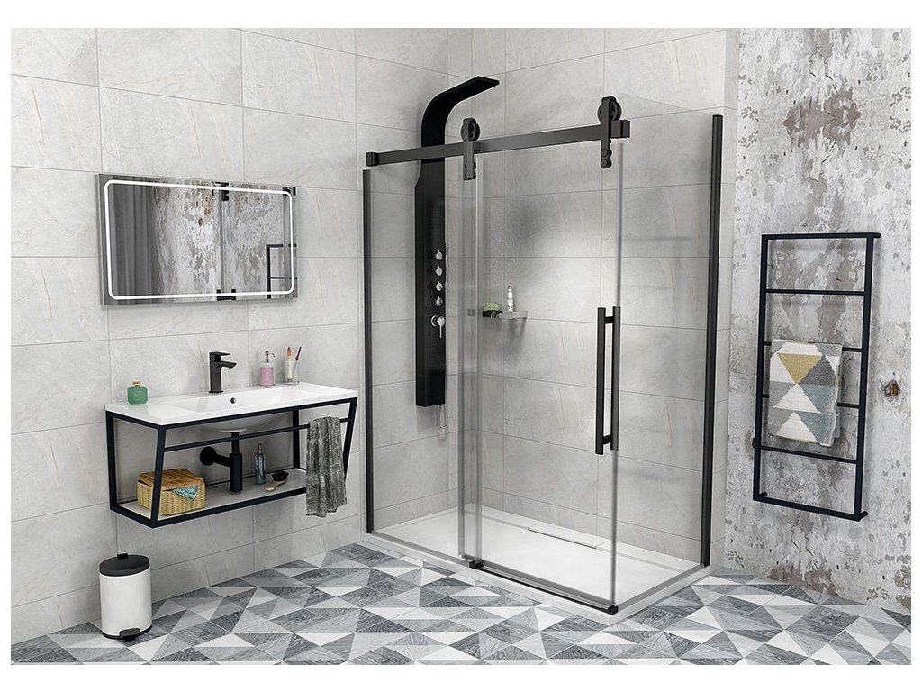 VOLCANO BLACK bočná stena 900 mm, číre sklo