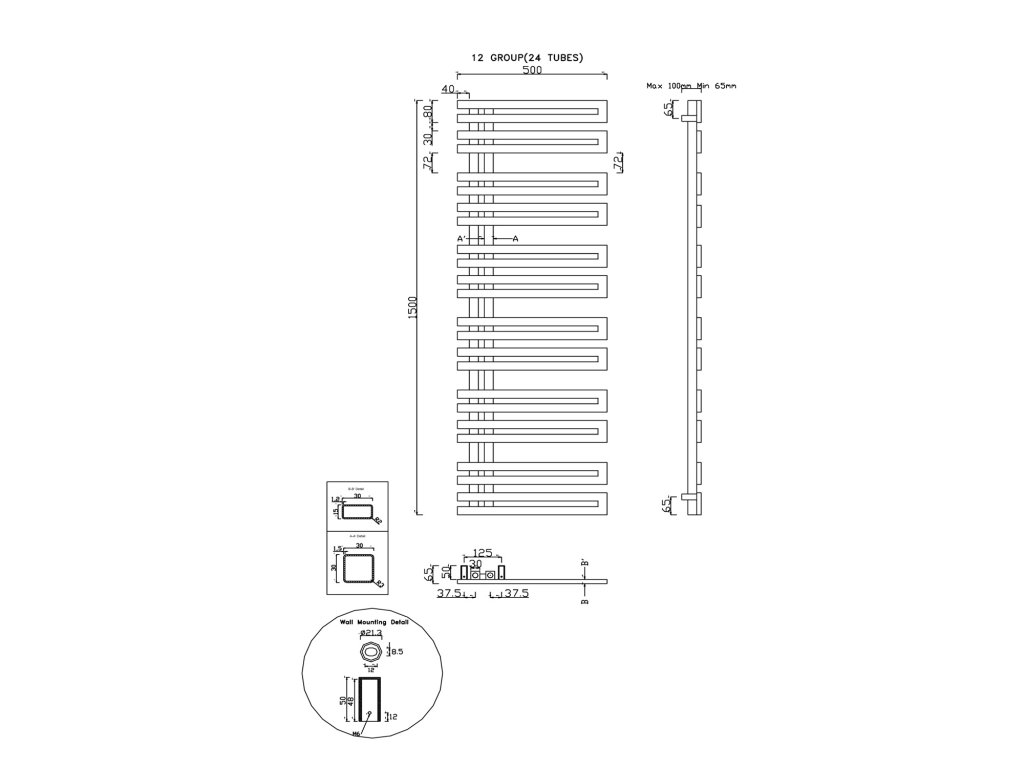 VOLGA vykurovacie teleso 500x1500mm, nerez mat