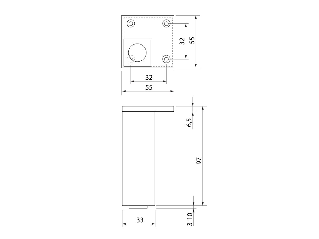 Výškovo nadstaviteľná nožička v.100-110mm, čierna mat