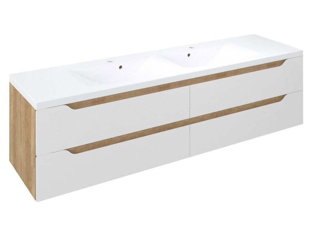 WAVE dvojumývadlová skrinka 179,7x50x47,8cm, biela/dub Alabama