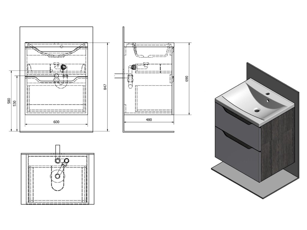 WAVE umývadlová skrinka 60x65x47,8cm, biela/dub strieborný
